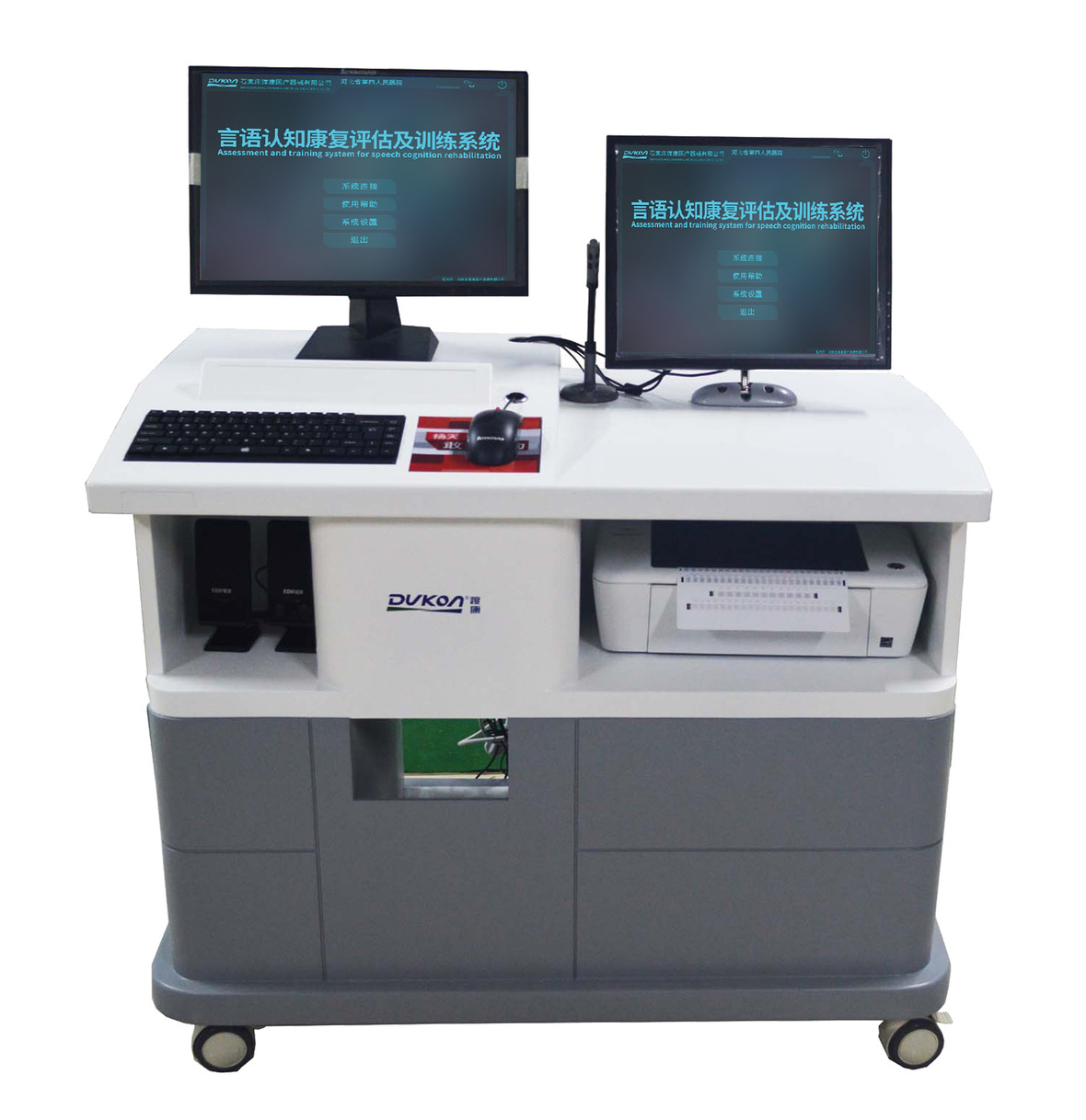 产品编号:979385590291980288 产品型号:DK-YYZ-01 产品规格:1000*610*900(mm) 销售方向:聋哑学校、康复医院、伤残疾病医院、儿童福利院等 销售科室:综合医院的康复科、神经内科、神经外科、心理科、儿科 产品配置:电脑一台,触摸屏式显示器,彩色打印机,麦克风,音箱